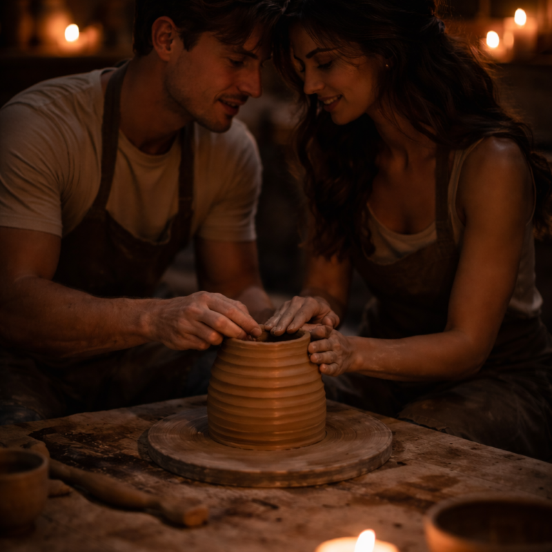 PO OMACKU – Walentynki w półmroku Chcecie poczuć bliskość w zupełnie nowy sposób? Zapraszamy na wyjątkowy, zmysłowy warsztat ceramiczny dla par, gdzie wzrok ustępuje miejsca dotykowi. W ten walentynkowy wieczór nasza pracownia zamieni się w oazę spokoju. W półmorku, przy blasku świec i nastrojowej muzyce, wspólnie stworzycie wazon metodą wałeczkową. Co Was czeka? Pełne skupienie…